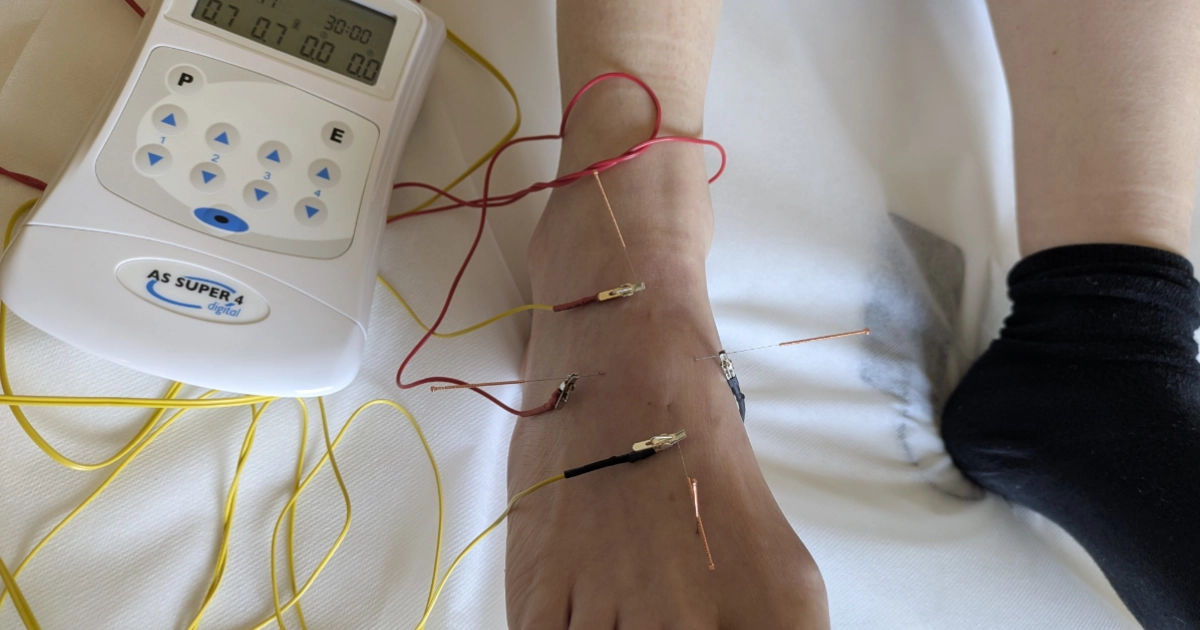 - שילוב אלקטרו-אקופונקטורה: המחטים המקומיות חוברו למכשיר אלקטרו כדי לעודד ריפוי של הרקמה ולשחרר את הלחץ העצבי. (פרמטרים: תדר של 25 Hz | רוחב פעימה של 200-300 µs | עוצמה של 500 µA).
