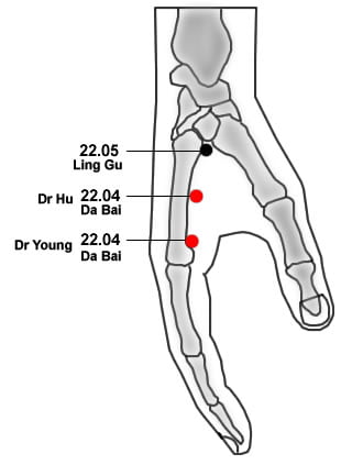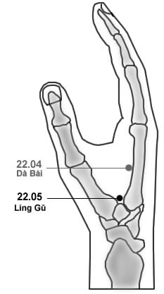 מיקום בצומת בין האגודל לאצבע המורה, במפגש של העצמות המטאקרפליות הראשונה והשניה. הנקודה נמצאת מול 22.02. שם הנקודה Líng 靈 – נשמה, מהיר, אינטליגנטי, פיקח. Gǔ 骨 – עצם. הסימניה עצם בשם הנקודה מרמזת על ההשפעה של הנקודה על הכליות והסימניה פיקח מרמז על היכולת הגדולה של הנקודה. לנקודה יש יכולת לטפל בהרבה אינדקציות שרובן